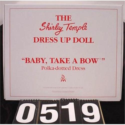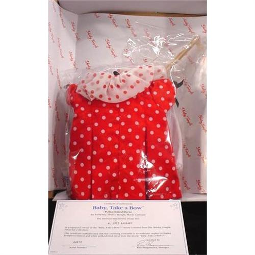 From Danbury Mint, Shirley Temple clothing from the movie Baby, Take a Bow. An authentic replica of Shirley's white polka-dotted dress. In perfect condition. Serial number A4013. Box measures 12" x 10" x 2" and weighs 11 ounces. [81]