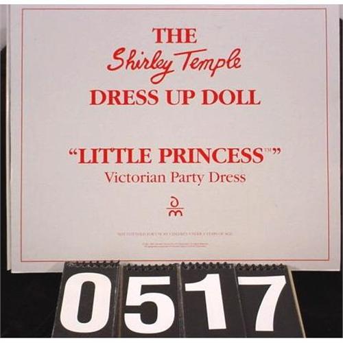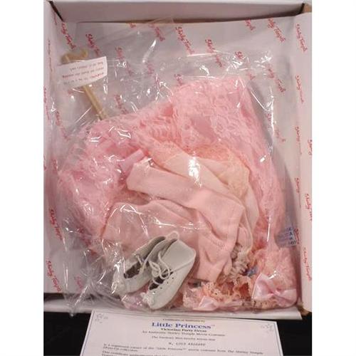 From Danbury Mint, Shirley Temple clothing from the movie Little Princess . An authentic replica of Shirley's pink Victorian party dress. In perfect condition. Serial number A4013. Box measures 12" x 10" x 2" and weighs 11 ounces. [81]