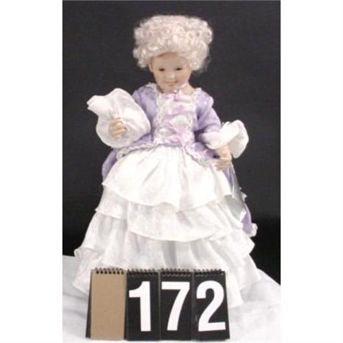 Shirley Temple Collector Doll from "Little Colonel." Created by the Danbury Mint cira 1992. Both doll and box are in perfect mint condition. Doll measures 18 inches tall and weighs 3 lbs 10 oz. [81]