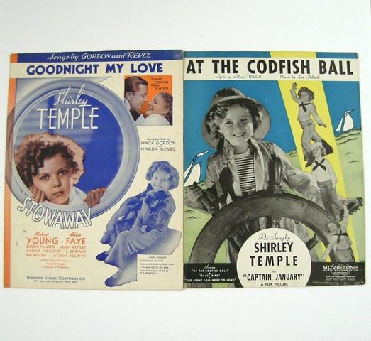 Shirley Temple Sheet Music Lot of 2 - "Goodnight My Love" (Stowaway 1936) & "At The Codfish Ball" (Captain January 1936)