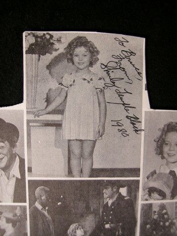 Shirley Temple Black autographed newspaper clipping. The clipping, from Shirley Temple Pictures, is dated 1935 and the autograph from 1980. (9x7)