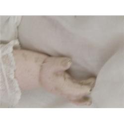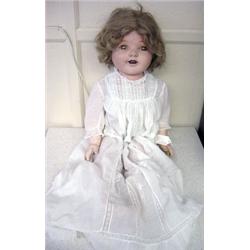 Shirley Temple type doll - 29" tall - Composition head, arms and legs and bodice, her tummy is cloth. She used to be a talker but is quieted down now, Beautiful early 1900's christening dress for clothing. She appears to be all original - untouched = not repainted. Sleep eyes,