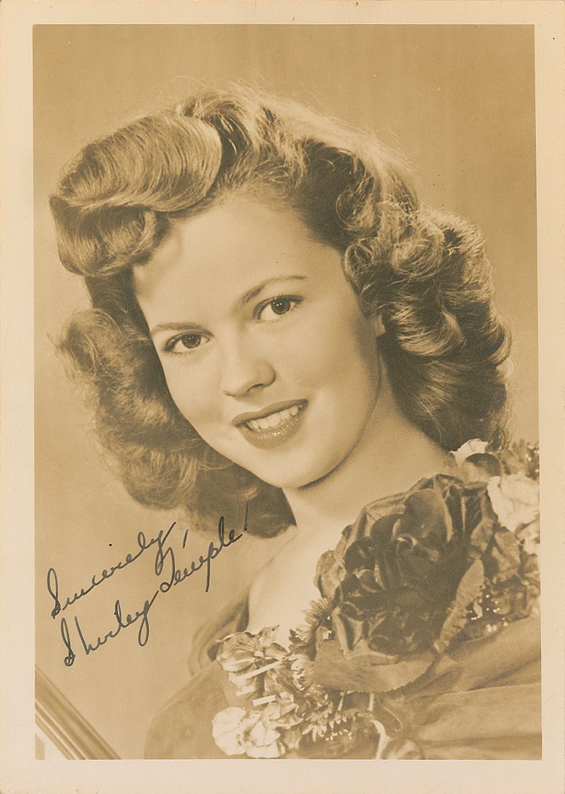 Vintage matte-finish 5 x 7 photo of Temple as a young lady, signed in fountain pen, “Sincerely, Shirley Temple.” In fine condition, with a few light impressions to the borders. Accompanied by the original mailing envelope.