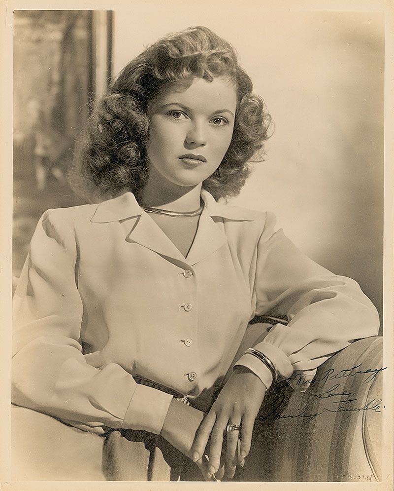 Vintage matte-finish 8 x 10 photo of Temple as a lovely young lady, signed and inscribed in fountain pen, “To Mrs. Rattray, Love, Shirley Temple.” In fine condition.