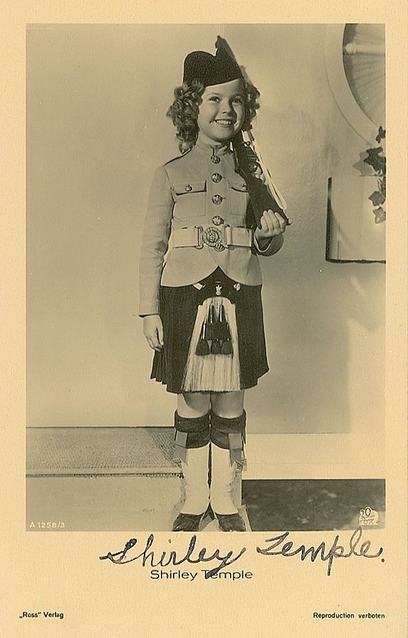 Vintage matte-finish 3.5 x 5.5 postcard photo of the iconic child actress in a soldier's uniform, signed in the lower border in fountain pen. In fine condition, with a few light postal impressions.
