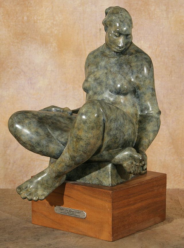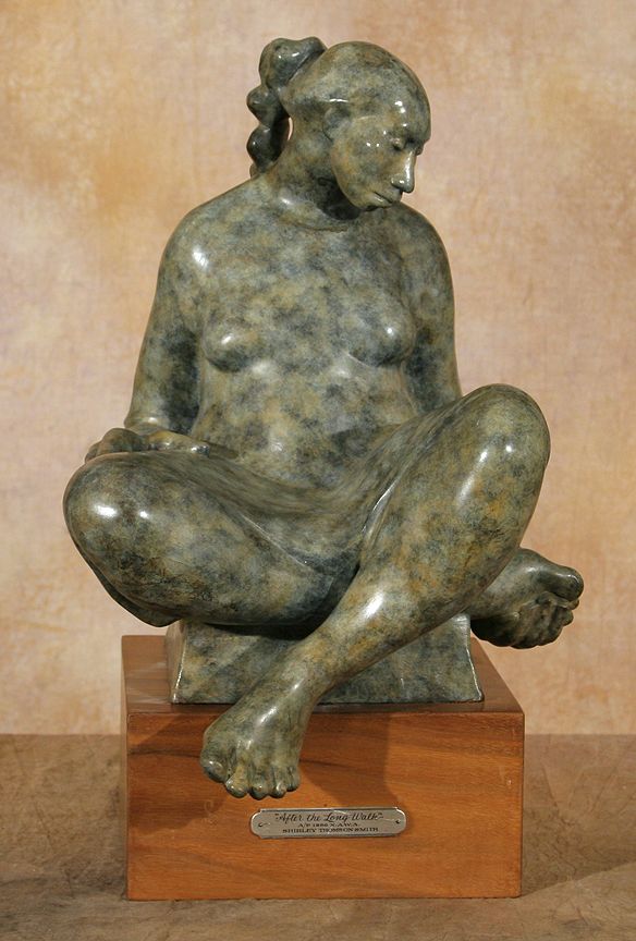Shirley Thomson Smith (b. 1929). After The Long Walk. 20" x 14" x 13" bronze #a/p. On a 5" pedestal base. Signature inscribed: © 1986 SHIRLEY T. SMITH A/P N.A.W.A. (est. $3,000-4,000). CONDITION REPORTS: www.auctioninsantafe.com/docs/cr2012.pdf