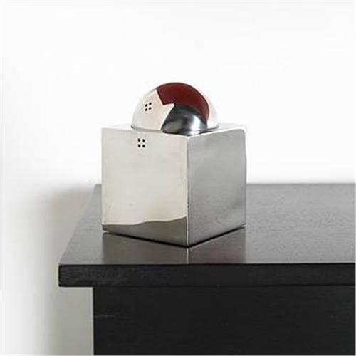 Shiro Kuramata<BR>spice set<BR>Japan, 1980<BR>chrome-plated steel<BR>2"w x 2"d x 3.25"h<BR>Literature: Shiro Kuramata 1934-1991, Hara Museum of Contemporary Art Tokyo, pg. 158<BR><BR><BR><BR><BR><BR>