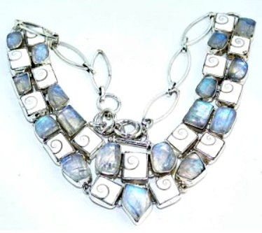 Silver and Shiva Pearl & Rainbow Moonstone Necklace. Allow 6 to 8 weeks for delivery.