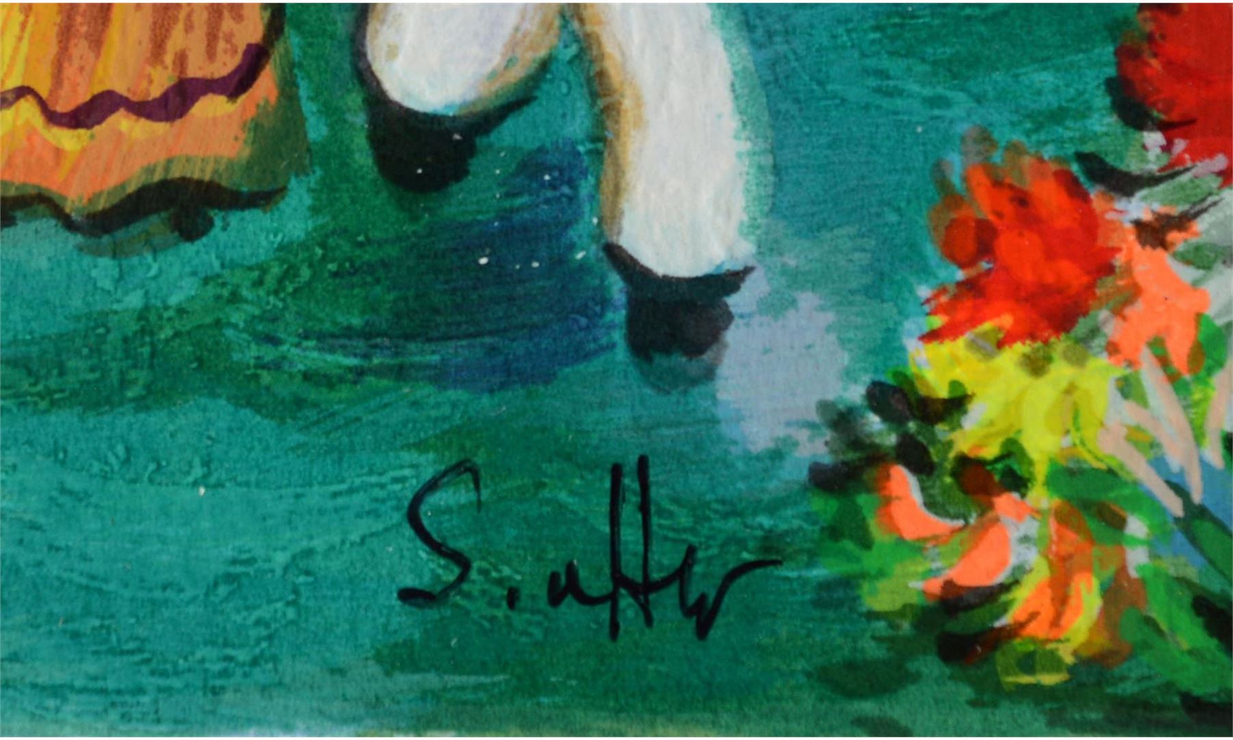 Artist: Shlomo Alter - Title: At the Circus - Medium: Serigraph on Fine Art Paper - Signature: Hand-signed by the Artist - Limited Edition: AP 50 - Paper Size: Approximately 9.5 inches x 12.25 inches - Unframed - Details: This work comes with a Certificate of Authenticity - Biography: Shlomo Alter was born in Romania to a family of restaurateurs. He emigrated to Israel in 1948 and during high school he started to study painting under the well known artist Aaron Avni. Some of his early works appeared in UNICEF'S world touring exhibition of young artists. Altar's works are influenced by his early recollections of the well dressed people who gathered in the courtyard of his parent's restaurant in Bucharest to eat and drink, to dance of Gypsy bands, and to enjoy the convivial atmosphere. With a touch of optimism and good humor Alter's art reflects life at its core, an antithesis to the Nazi regime that shattered his childhood happiness. His paintings are like stage set on which the objects relate to each other through a glow of colors and lines - a frozen moment in time, a dynamic stillness prior to a burst of action. His style can best be compared to that of the Expressionists. He uses color to give direct expression to his ideas in influence by the famous, particularly Matisse and Duty.