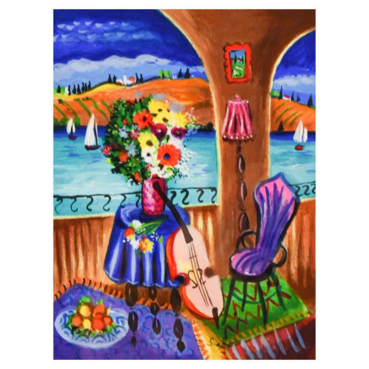 "Spanish Guitar" is a limited edition serigraph on paper by Shlomo Alter, numbered 117/495 and hand signed by the artist. This piece comes custom framed. Includes Letter of Authenticity. Measures approx. 17.5" x 20.5" (frame), 8.5" x 11" (image). Reference #: 247106
