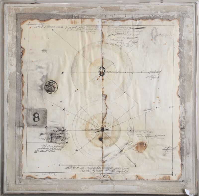 Shlomo Koren, Conceptual Moon Phases 8, Ink, Watercolor and Collage mounted to Canvas, signed l.l.