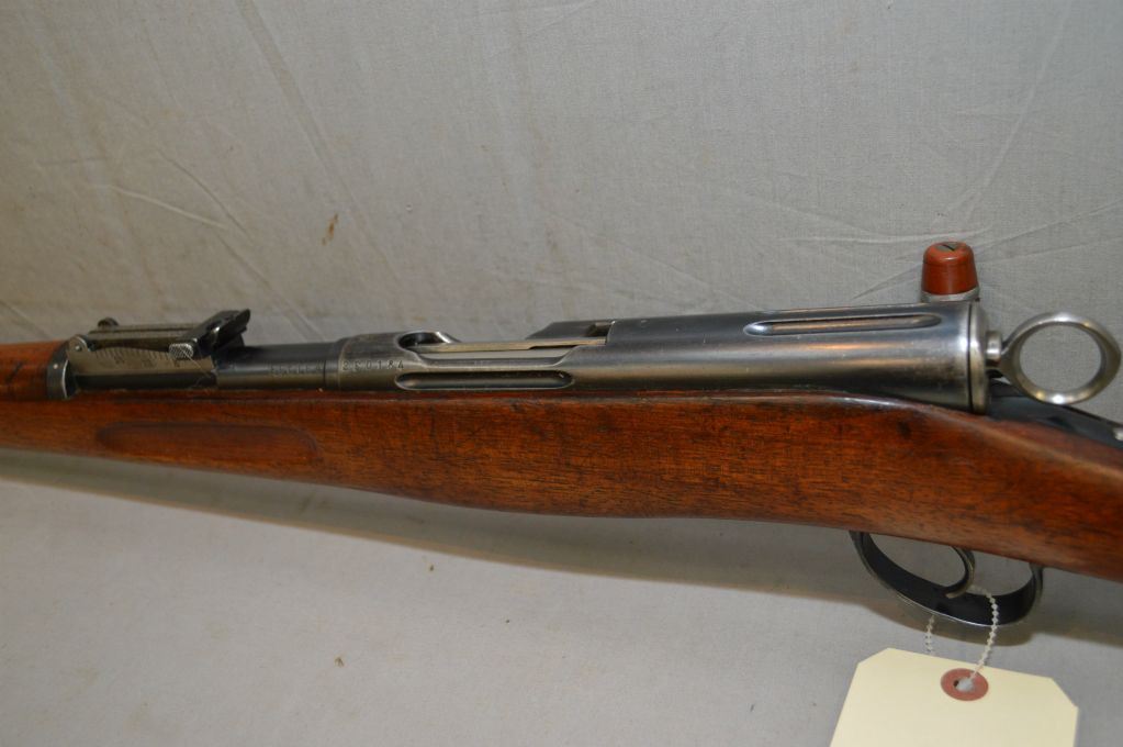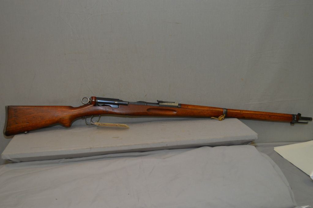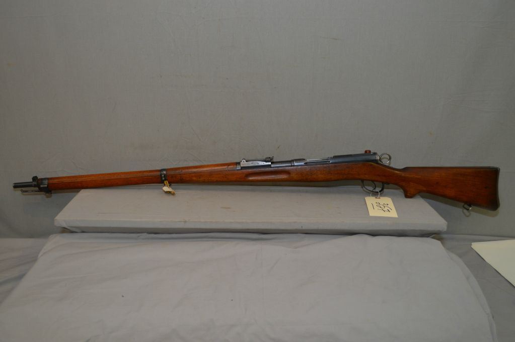 Shmidt Rubin Model 1911 7.5 x 55 Cal ? Straight Pull Bolt Action Full Wood Military Rifle w/ 31" bbl [ blued finish, barrel sights, matching numbered bolt & barrel, good wood, w/sling swivels, missing the box mag ] Ser # 290184