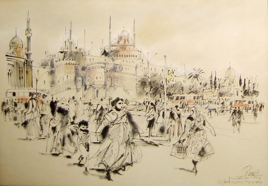 Shmuel Katz, Israeli Art, B. 1926, Figures in Acre, 1978, Watercolor and ink, 34x49cm, Signed, dated and dedicated., , , , ,