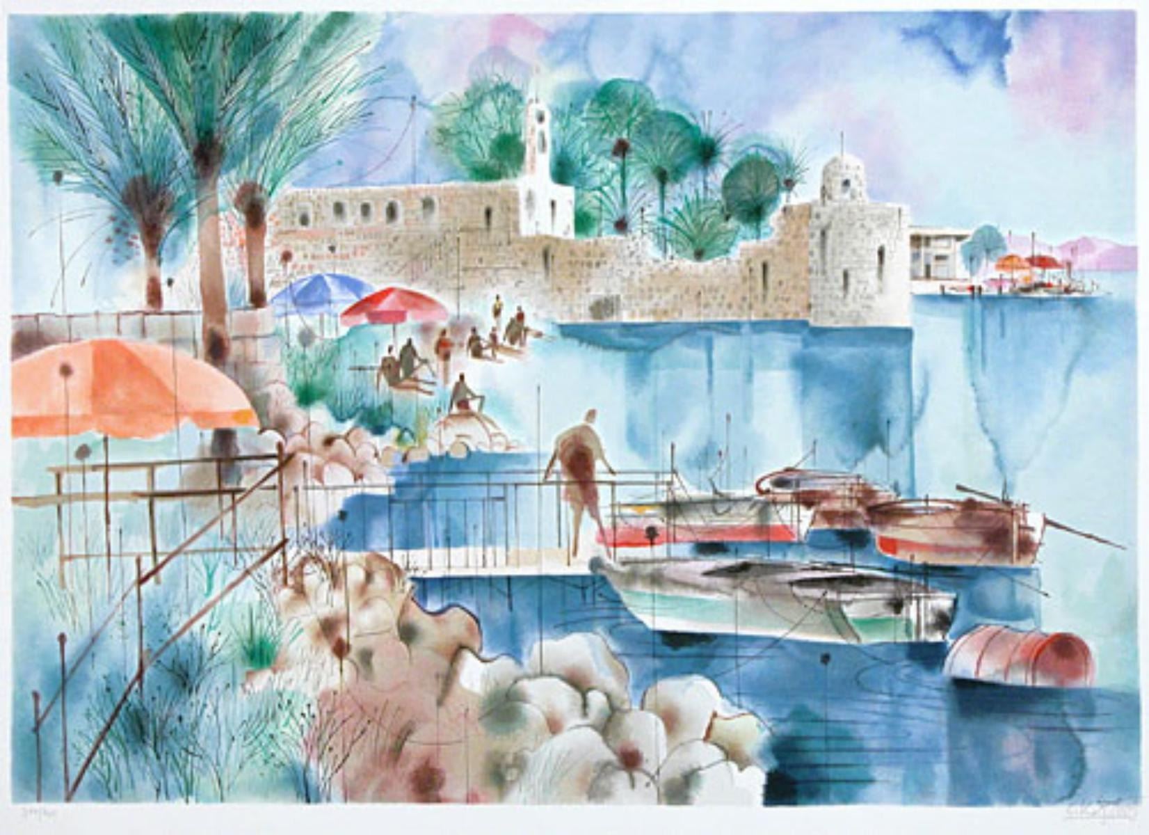Artist: Shmuel Katz. Medium: Original Serigraph. Title: Ancient Fort. Size (Unframed): 27" x 38". Certificate of Authenticity: Is Included.