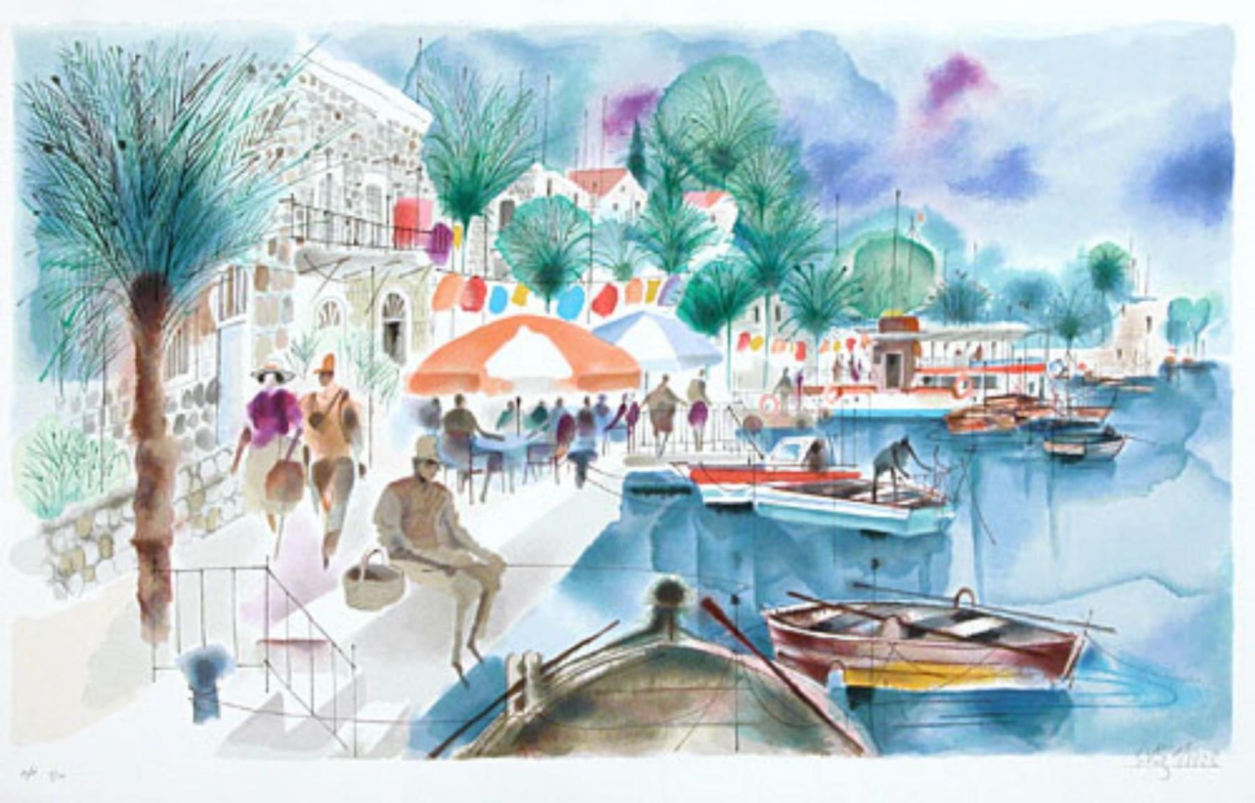 Artist: Shmuel Katz. Medium: Original Serigraph. Title: Fisherman and Basket. Size (Unframed): 23" x 38". Certificate of Authenticity: Is Included.
