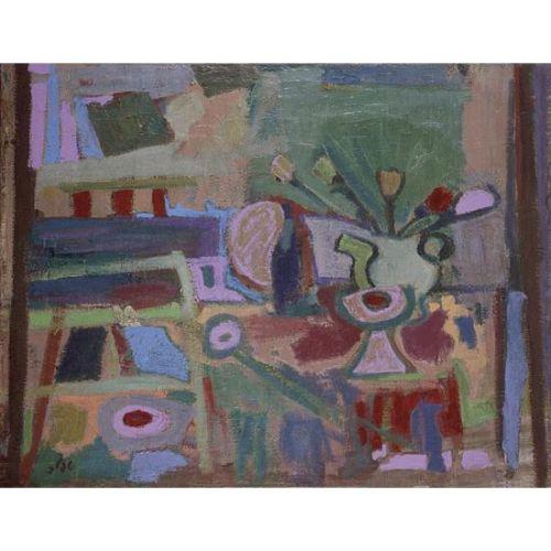 Shmuel Tepler<BR>Israeli painting<BR>1918 - 1998<BR>Flowers on a Table<BR>Oil on canvas<BR>89x116 cm<BR>Signed.