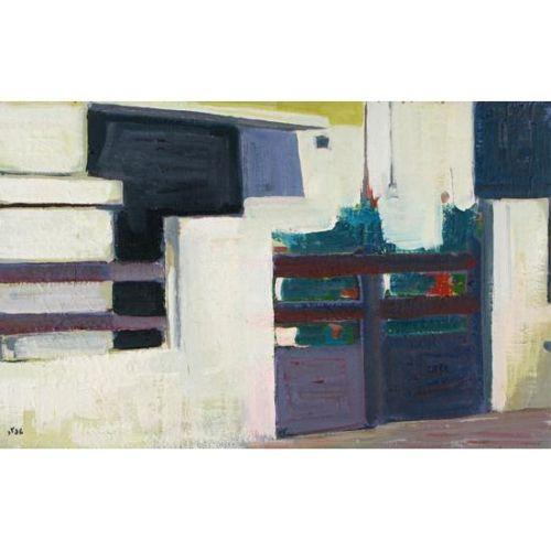 <B>Shmuel Tepler</B><BR>Israeli painting<BR>1918 - 1998<BR>House in Tel Aviv<BR>1982<BR>Oil on canvas<BR>50x80cm<BR>Signed. Dated on the reverse.