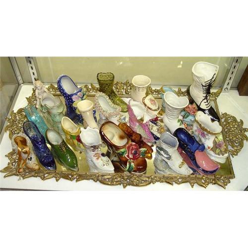 A superb single owner 40 year old collection of shoes made of various materials; including porcelain, pottery, majolica and depression glass and would make a great gift or addition to any fine collection.