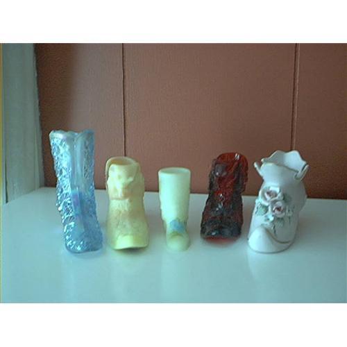 Fenton Glass Shoe or Slipper Collection. This set of 5 shoes are all in excellent condition with no chips or cracks. All are made by Fenton Glass with the exception of one and it was made by Lefton. I will be glad to provide more pictures of each individual shoe if needed. All carry the name of Fenton on the bottom except of course, the one by Lefton. These were purchased from the granddaughter of the shoe collector's estate. I am not sure of the exact year of each shoe, so that is the reason for the circa date of 1950-2000. I have included a picture of one of the labels and a picture of one of the shoes which is artist signed.