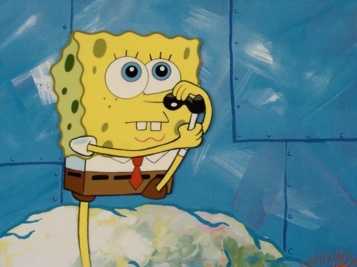 This animation cel and reproduction background are from the Nickelodeon TV show SpongeBob Squarepants. The story takes place under the deep blue sea in Bikini Bottom, where SpongeBob resides. SpongeBob, who is a yellow, porous sponge, is your typical happy-go-lucky character, as he is always cheerful and enjoys making people laugh. Patrick Star, SpongeBob's neighbor who is a starfish, is your average children's show idiot, as he boasts knowing nothing and is often getting himself into ridiculous situations. Between the homes of these two lies the home of the miserable Squidward, a squid, who is known for being grouchy and playing tricks on SpongeBob and Patrick. Both SpongeBob and Squidward work at the Krusty Krab, a fast food business run by the greedy money-loving Mr. Krabs, a crab, the arch rival of the evil, possibly misunderstood, Plankton. Another neighbor, Sandy Cheeks, an athletic squirrel who normally wears an astronaut's space suit, was introduced in "Tea at the Treedome." She spends most of her time inventing and experimenting. Why is SpongeBob putting his shoe to his nose?Original Printed Background and Animated Cel Overall Size of Background: 11" x 17" Overall Size of the Cel: 10 1/2" x 12 1/2" Very good condition This is an original hand-painted cel set-up used in the production of an episode of "SpongeBob SquarePants." Each one-of-a-kind set-up represents a slight change in position of the characters. When individually photographed and projected in rapid succession, the images appear to move.
