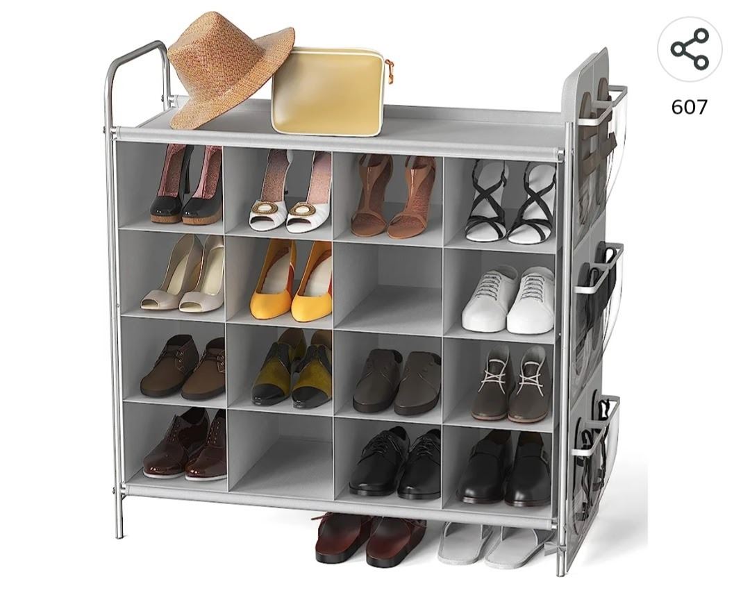 Simple Houseware, 16 Compartment, Cubby Shoe Rack, Grey, Open box Like New Condition, Picture May Not Be Identical