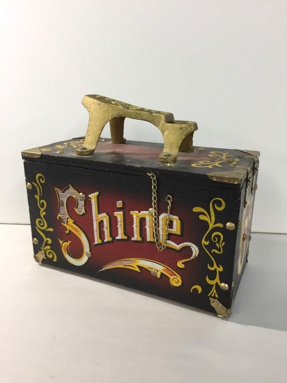 Store all your foot-ware supplies in this vintage style Shoe Shine Box, 11 x 7 x 6 inches. In good condition, a few small scuffs.
