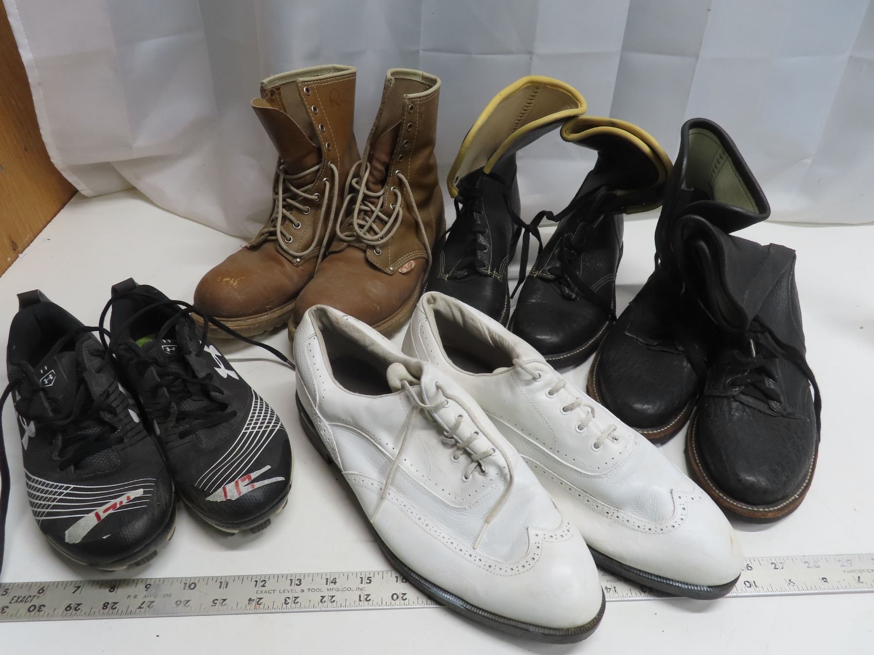 Shoe lot two new pairs of boots work boots shoes and cleated soccer shoes