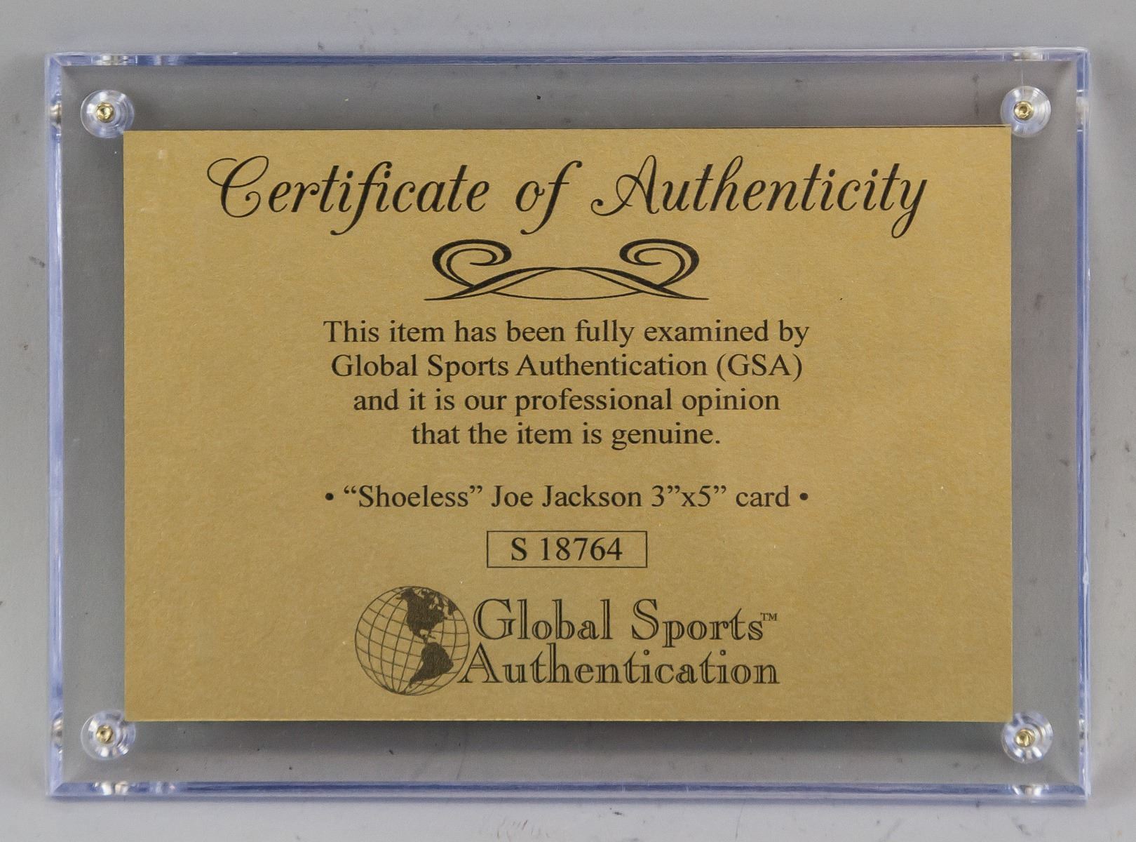 Cut autographed, signed Joe Jackson. Accompanied with a certificate of authenticity. 12.5 x 17.5 cm, 155 grams. Photograph not included. Joseph Jefferson Jackson, nicknamed "Shoeless Joe" (1887-1951), was an American star outfielder who played Major League Baseball in the early 1900s