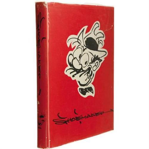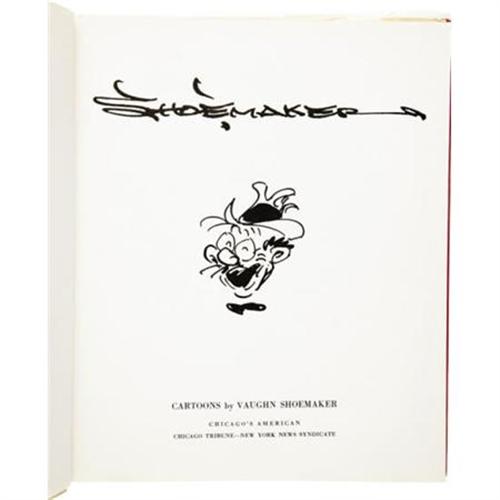 <B>Vaughn Shoemaker: An Inscribed Copy, with an Original Drawing, of <I>Shoemaker: Cartoons by Vaughn Shoemaker.</B></I></B></I> ( N.p., Chicago: Chicago's American, Chicago Tribune-New York News Syndicate, n.d., 1966 ). First edition, limited edition (this being number 1875 of an unspecified number of copies). With a full-page inscription and drawing on the front free endpaper to Eleanor. Quarto (9.5” x 7.5”). Illustrated with Shoemaker cartoons. Publisher's oatmeal cloth, illustrated and lettered in black. Color illustrated dust jacket. Book is in excellent condition, jacket slightly tired with rubbing and a few short tears and light soiling. Altogether, a very good copy with an charming sketch.<BR><BR><b>Shipping:</b> Books & Catalogs (<a target="_blank" href="http://www.heritageauctions.com/common/shipping.php">view shipping information</a>)