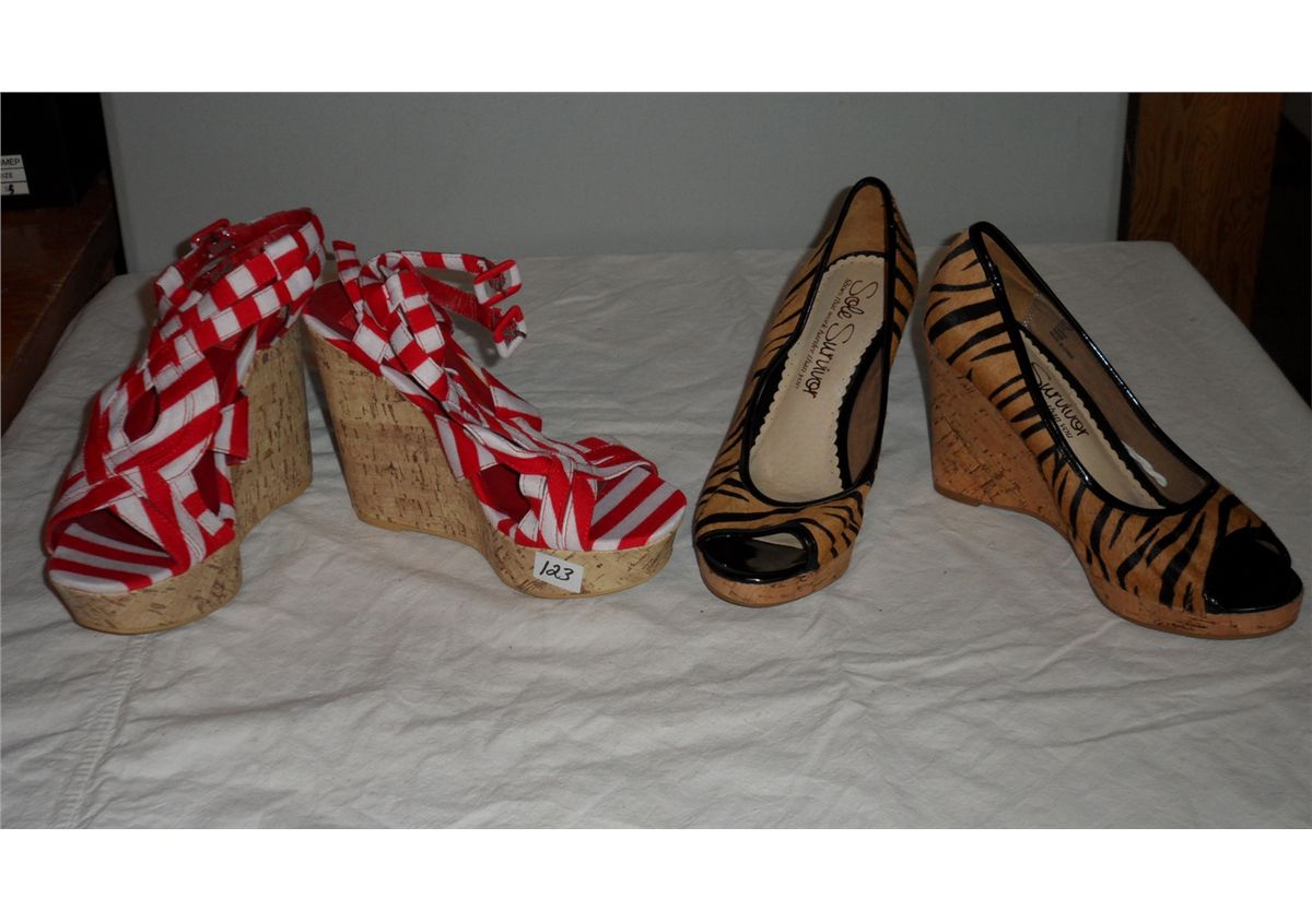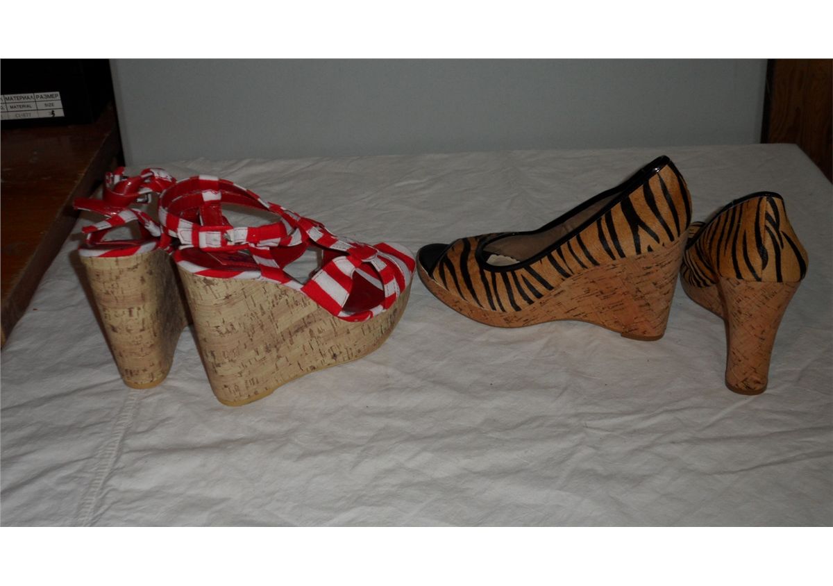 Stripped Sandal 4" heel Red/ White Size 6.5 / Sandal 3" heel Tiger Print Size 6