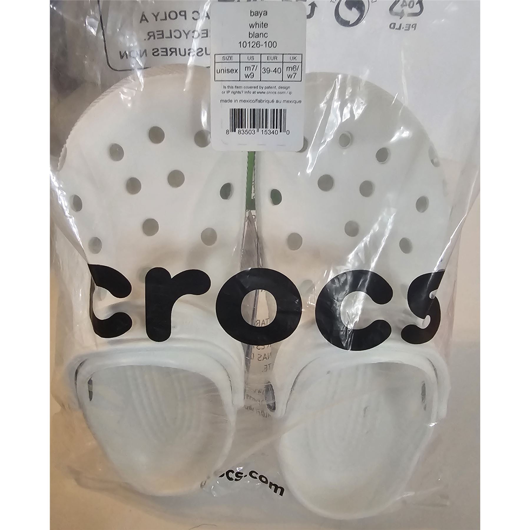 Baya clog style, size US M7/W9, color white, new in package.