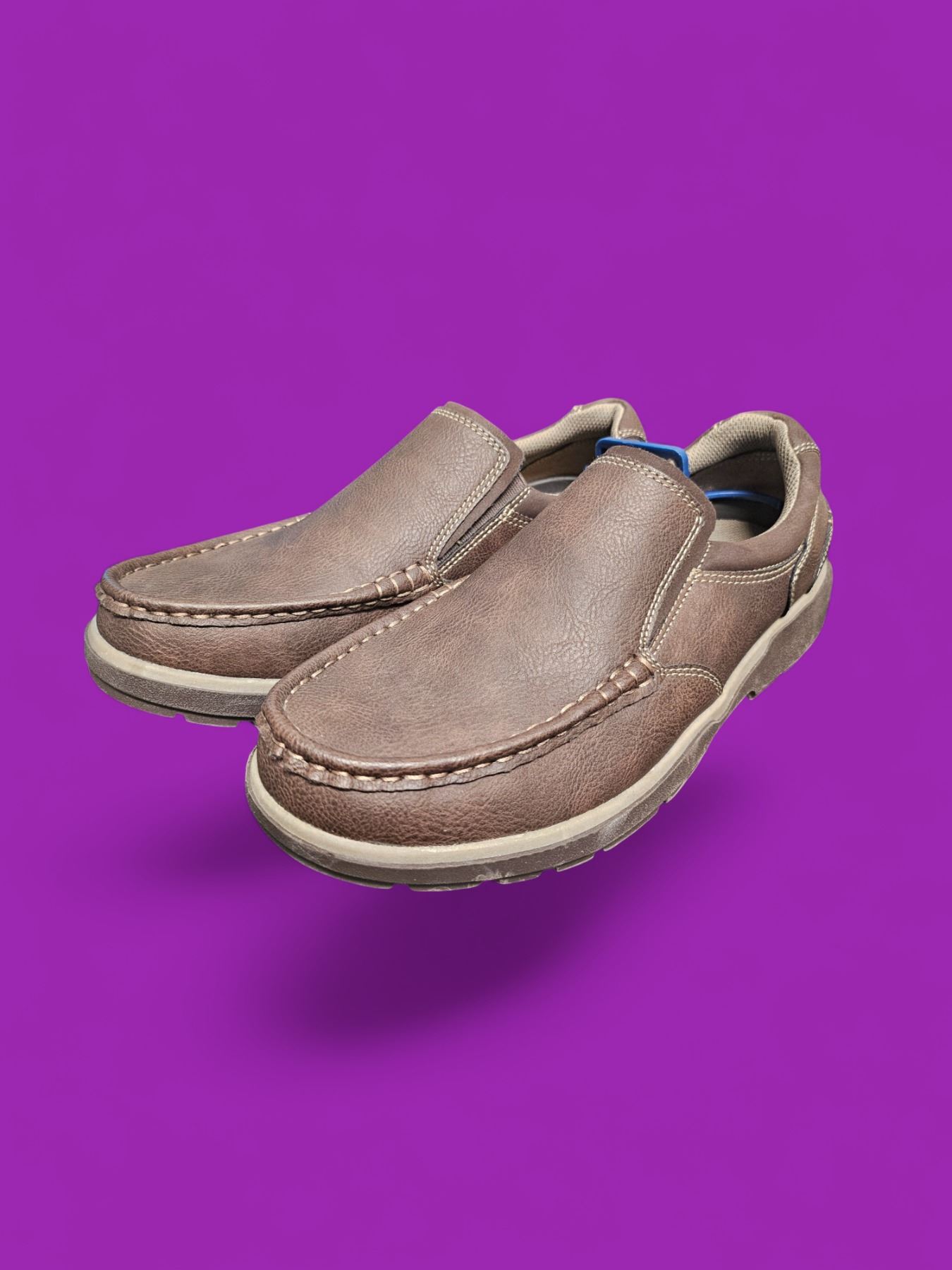 men's leather loafer style Dr scholl's shoes size nine and a half wide. one small part of the insole seems to be missing