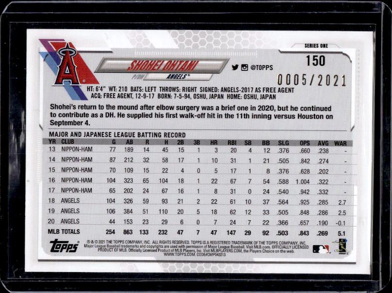 Shohei Ohtani Gold /2021 2021 Topps Series One #150