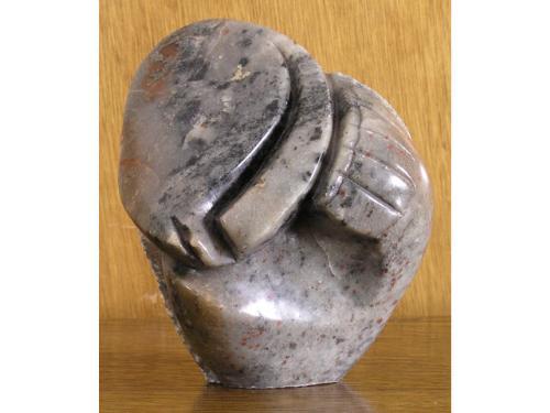 [Zimbabwean 20th century] TOO MUCH IN MY HEAD Fruit serpentine stone sculpture 8.5 ins. high