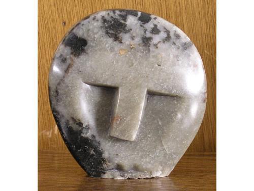 [Zimbabwean 20th century] SERIOUS MAN Fruit serpentine stone sculpture 5.75 ins. high