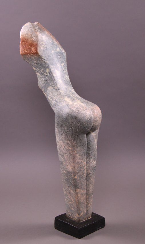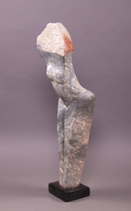 Shona Stone Sculpture from Africa signed by artist "L-Joseph". Believed to be dated to 1950's. Smooth and polished female form weighing over 35 pounds. Size: 20" x 11" x 8".