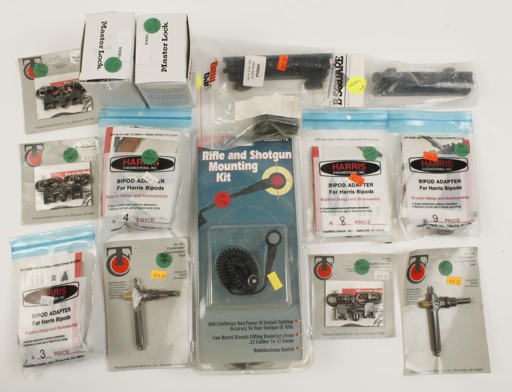 Harris Bipod Adapters, Thompson/Center swivels and combo tools, SIG 556 adjustable rear sight, B-Square AR 15 flat top sight rail adapter, ProMag Ar15 Flat Top Scope Riser., Laserlyte Rifle & Shotgun Mounting kit, 2 Master Lock gun locks.