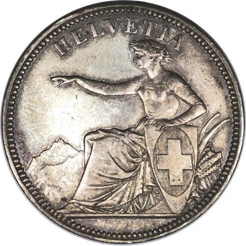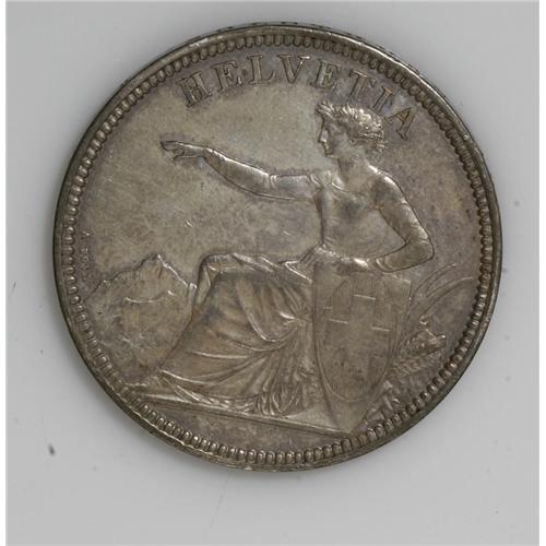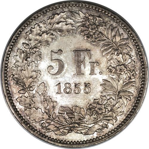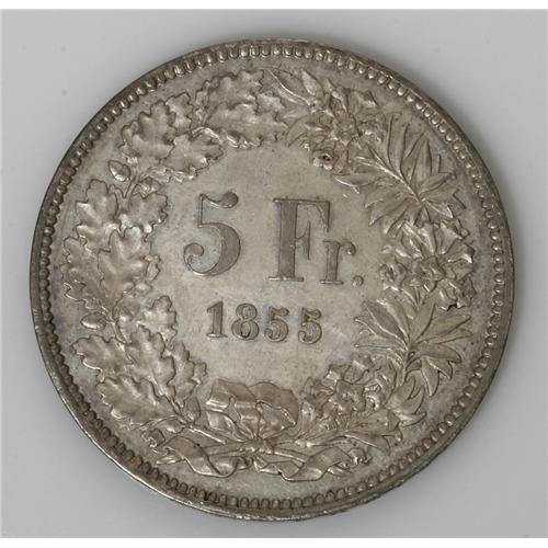 <B>Shooting Festival 5 Francs 1855 Solothurn,</B></I> KMS3, XF with nice original toning.