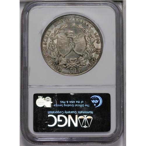 Shooting Festival 5 Francs 1869 Zug, KMS10, MS63 NGC. L