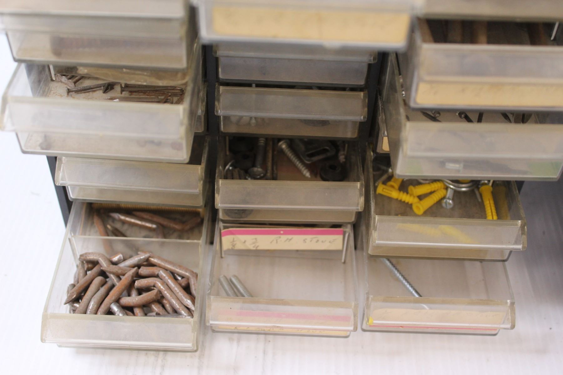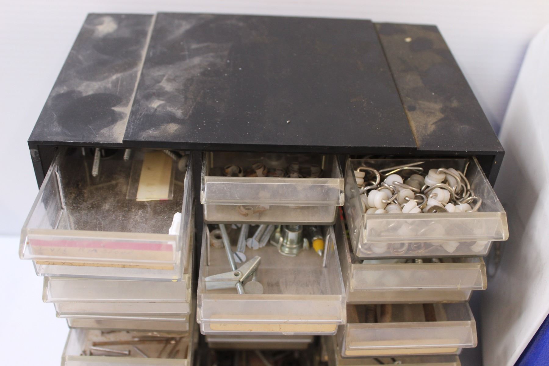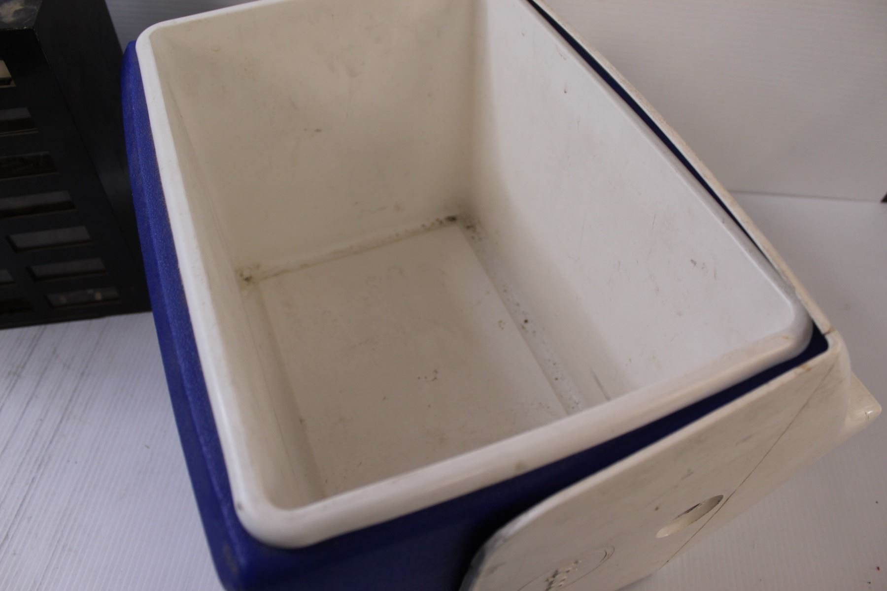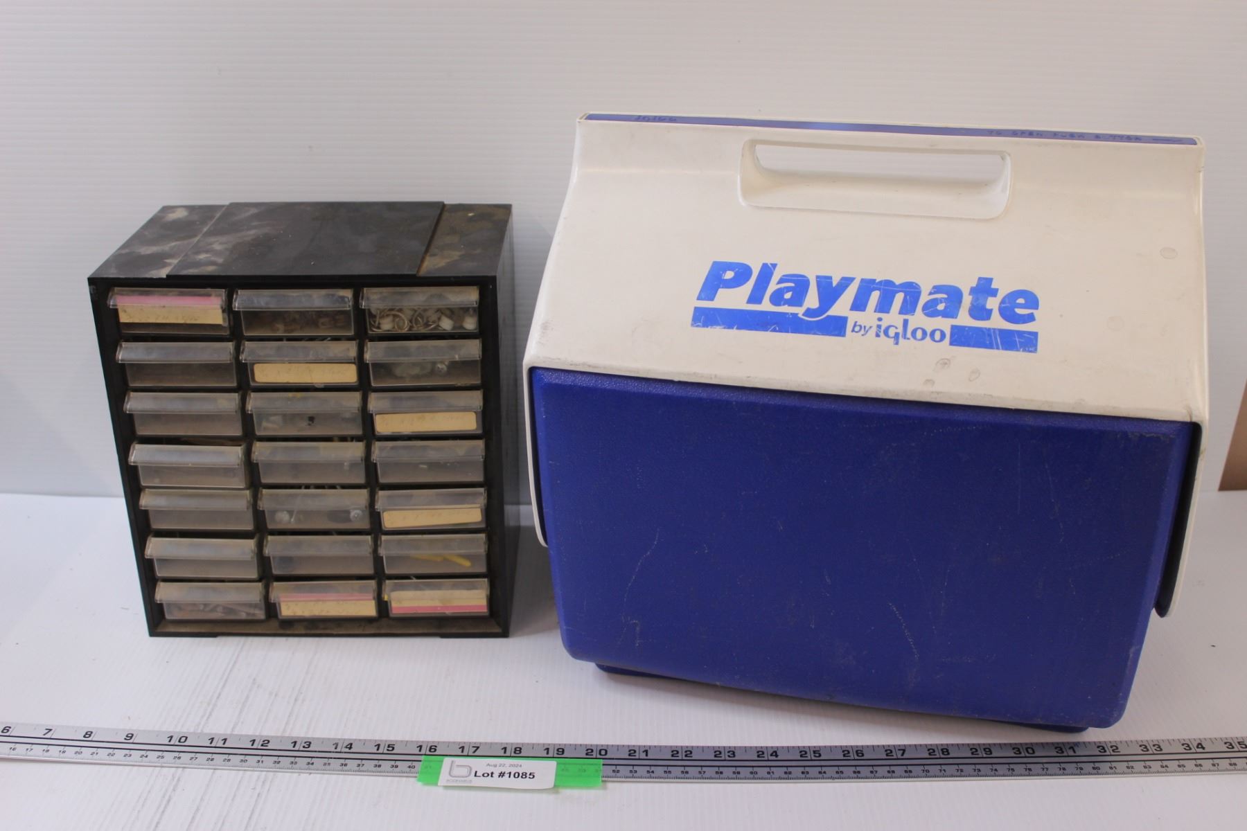 Shop Hardware Organizer w/ Contents & Igloo Cooler (Locking Mechanism Broken)