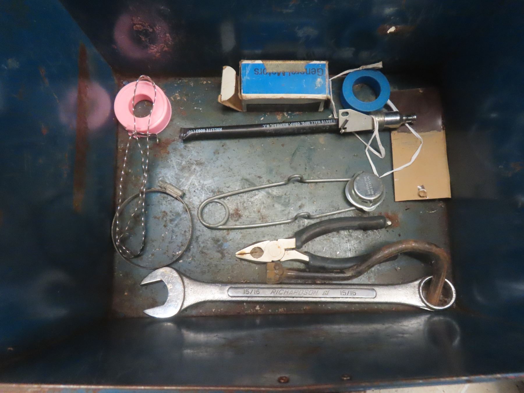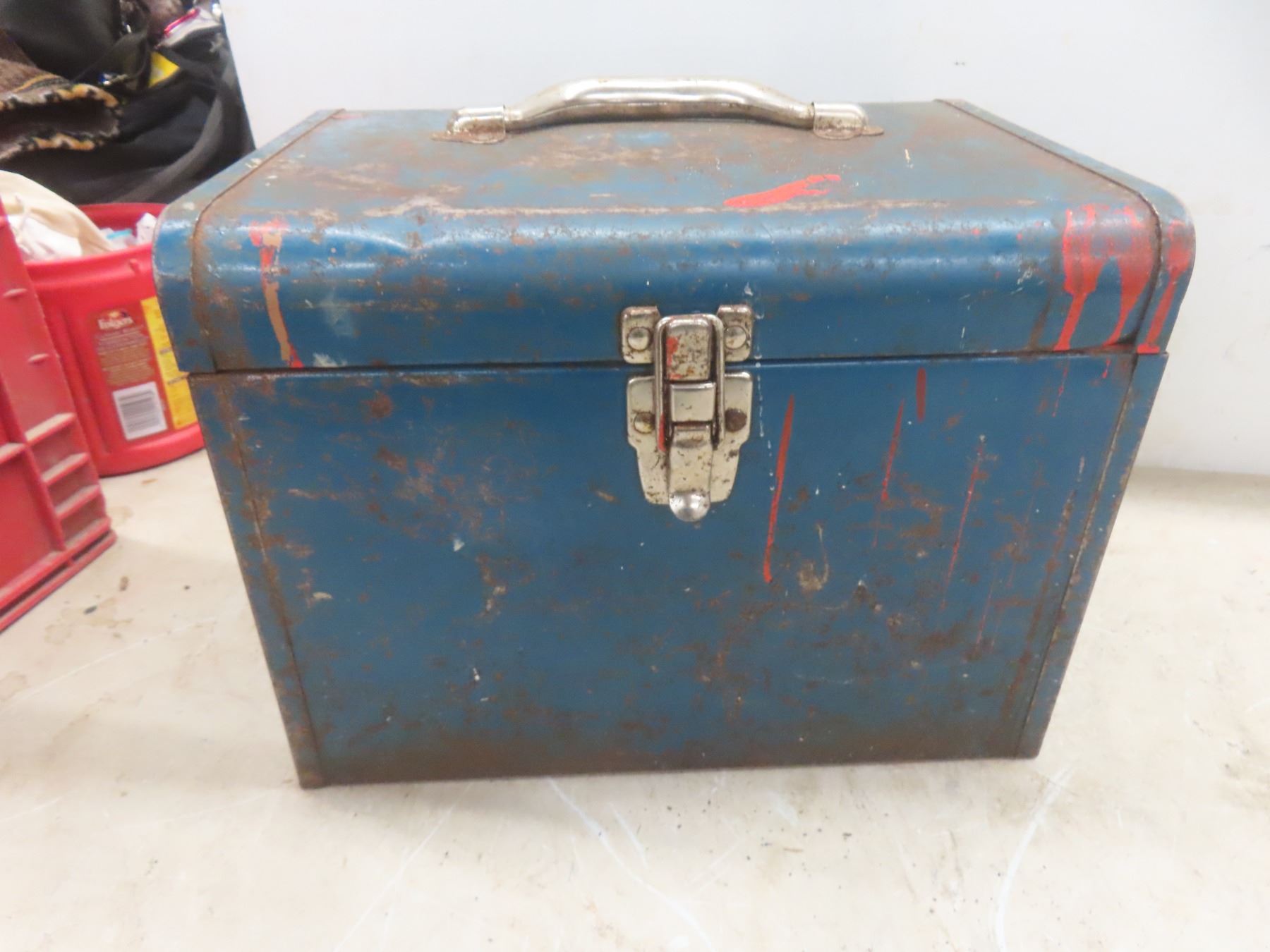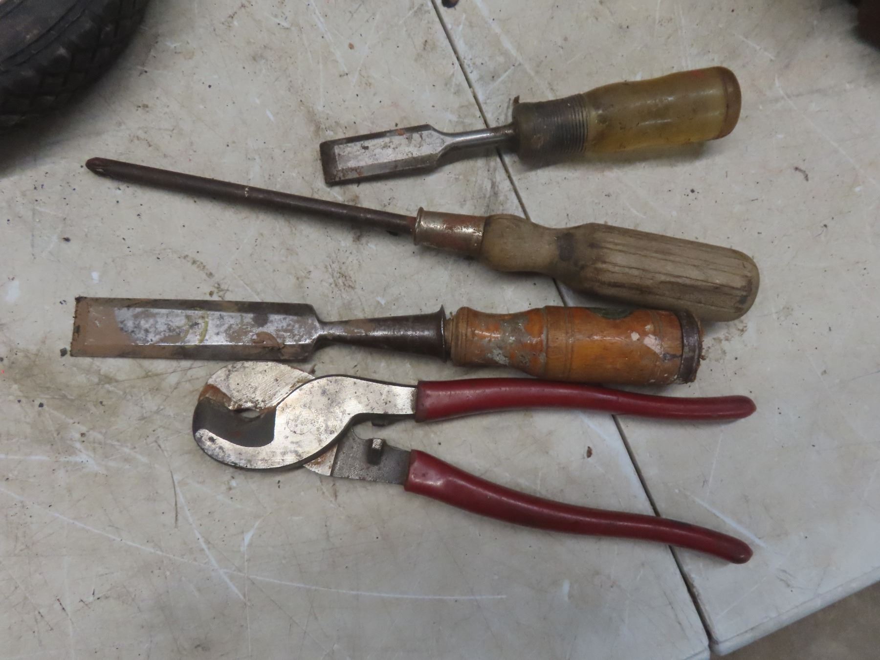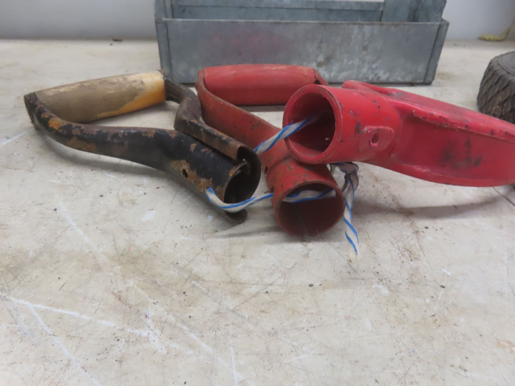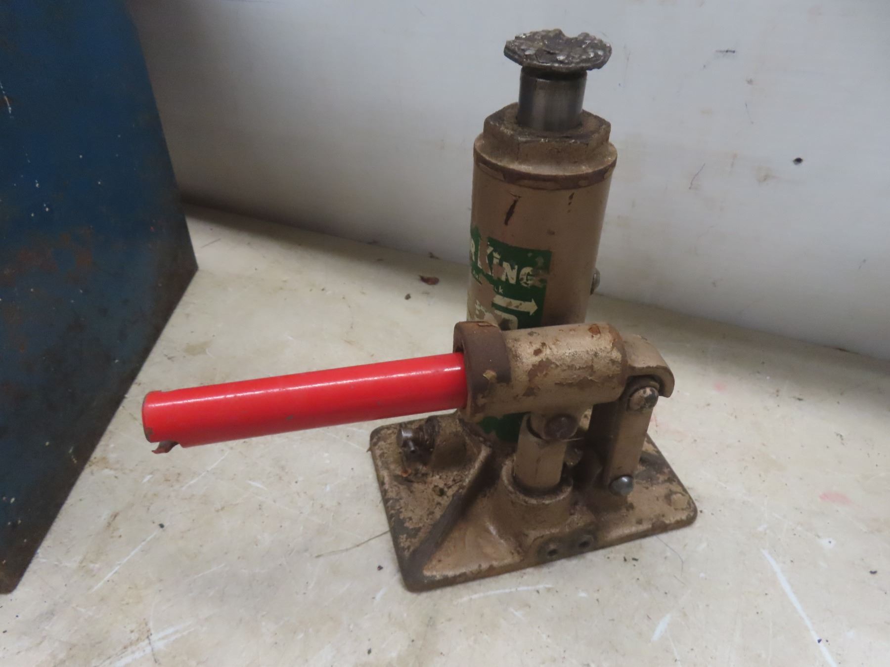Shop Lot—Metal Toolbox; Hydraulic Jack; Shovel Handles; Ratchet Straps; and 6" T-Pipe, and More.