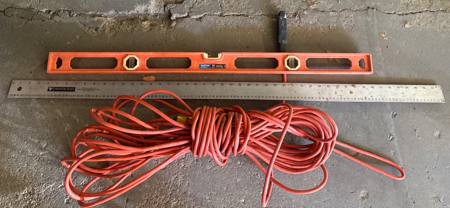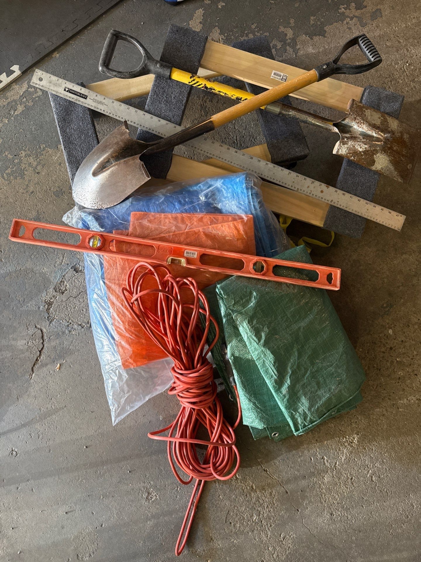 Shop Necessities - Level, Extension Cord, Tarps, Shovels, Mastercraft Ruler, Dollies