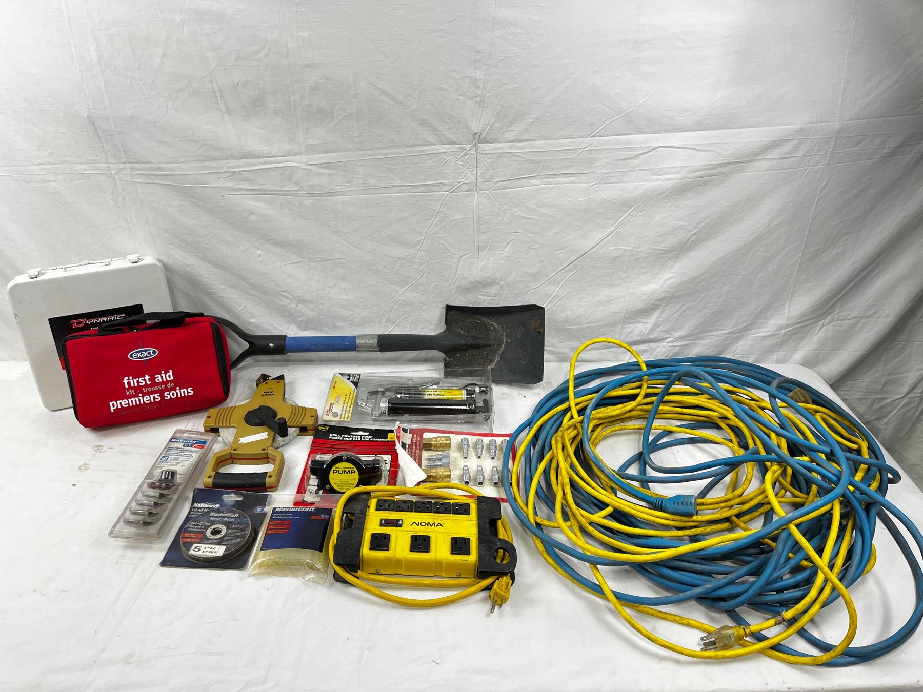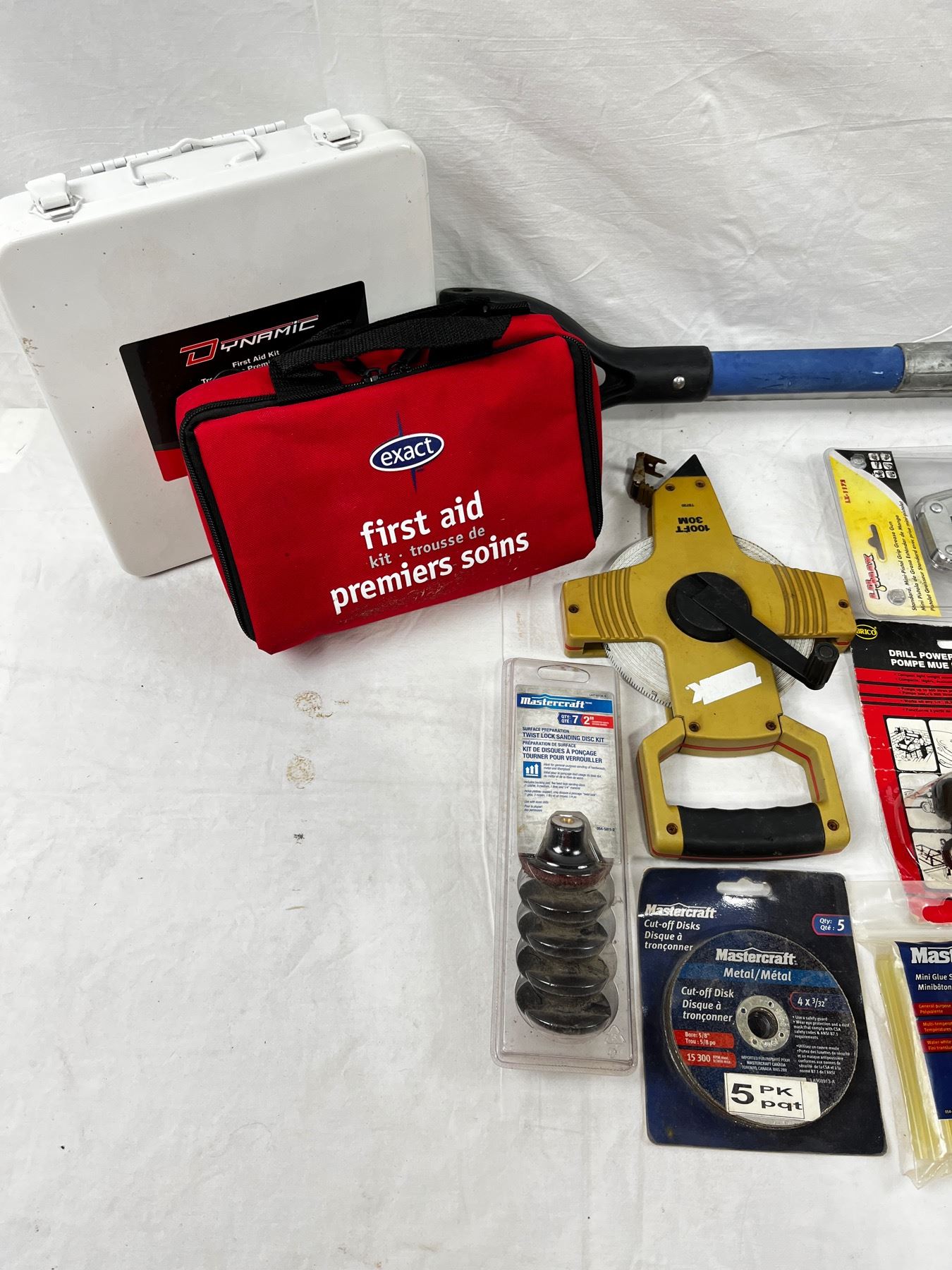 Including first aid kit, extension cords, sanding and cut-off discs, etc