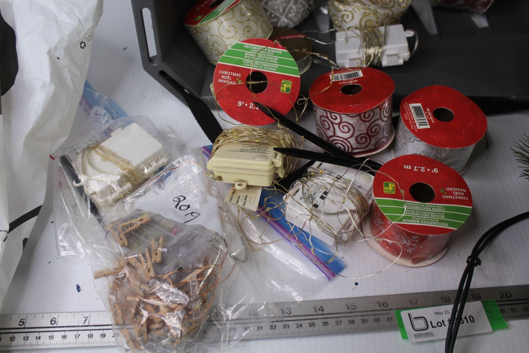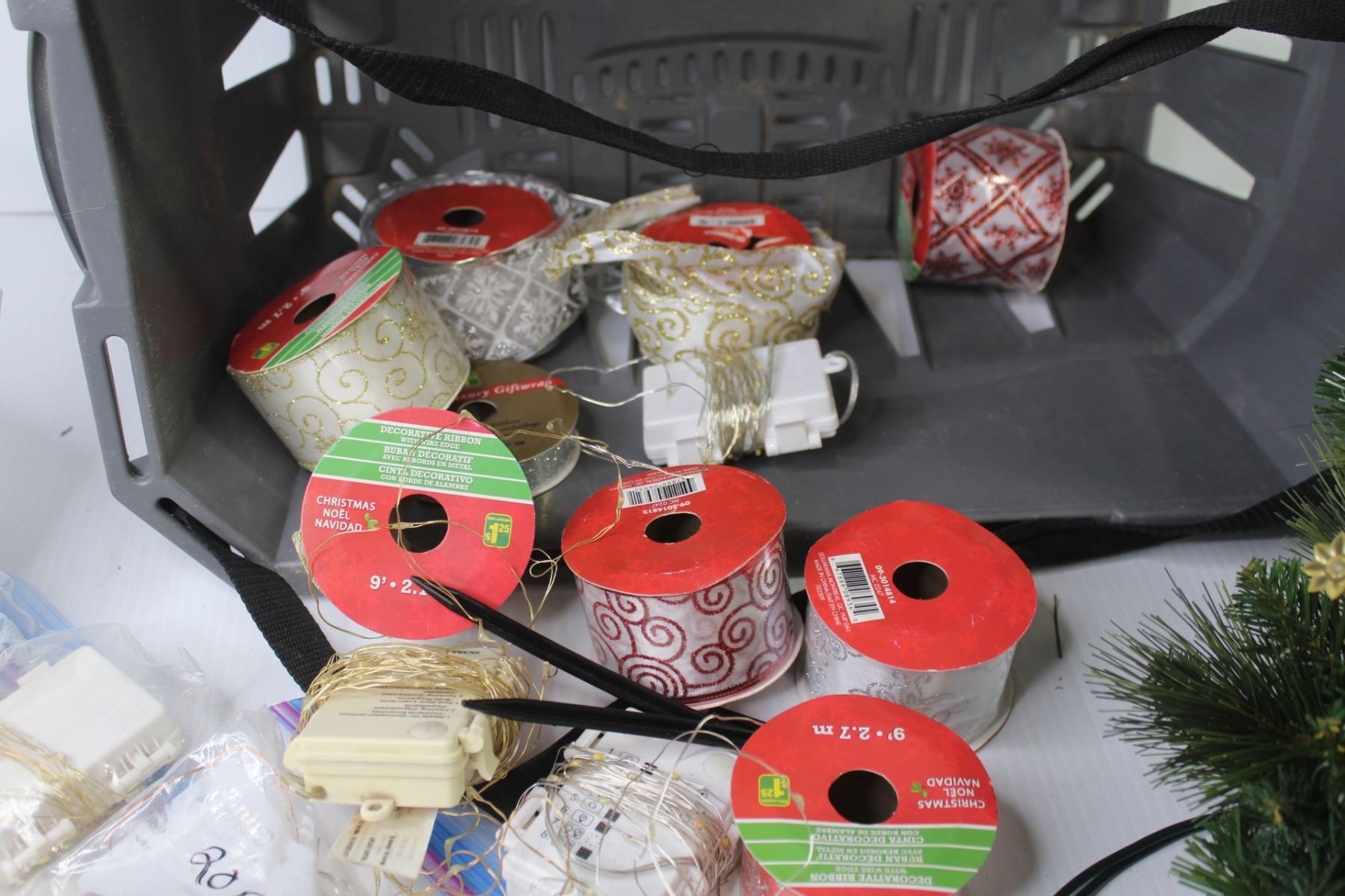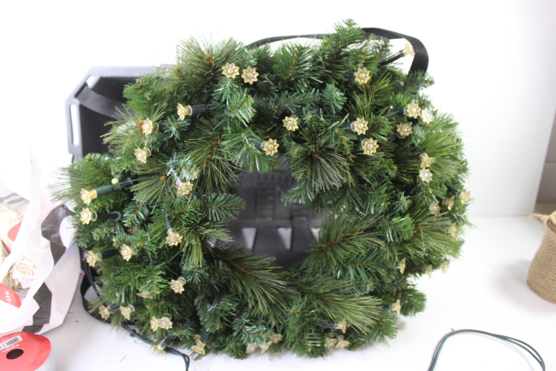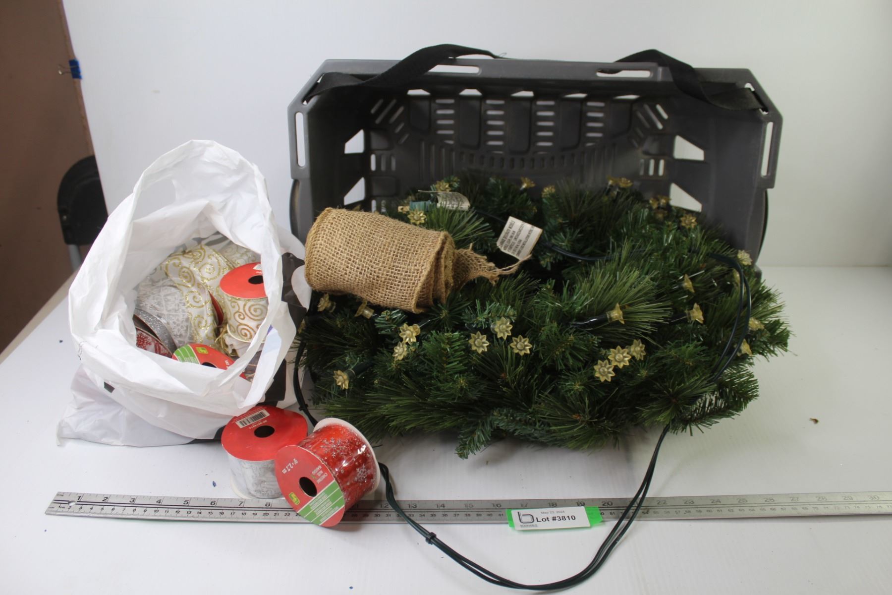 Shopping Basket, Lighted Christmas Wreath, Assortment of Ribbons
