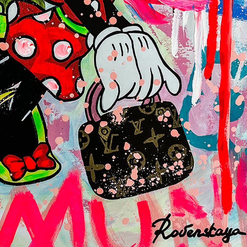 "Shopping Time" is a one-of-a-kind mixed media on deckle edge paper by Nastya Rovenskaya; hand signed by the artist. This piece comes custom framed and includes letter of authenticity. Measures approximately 36" x 30" (framed), 30" x 24" (image). This item requires special handling and may have a longer than usual turnaround.