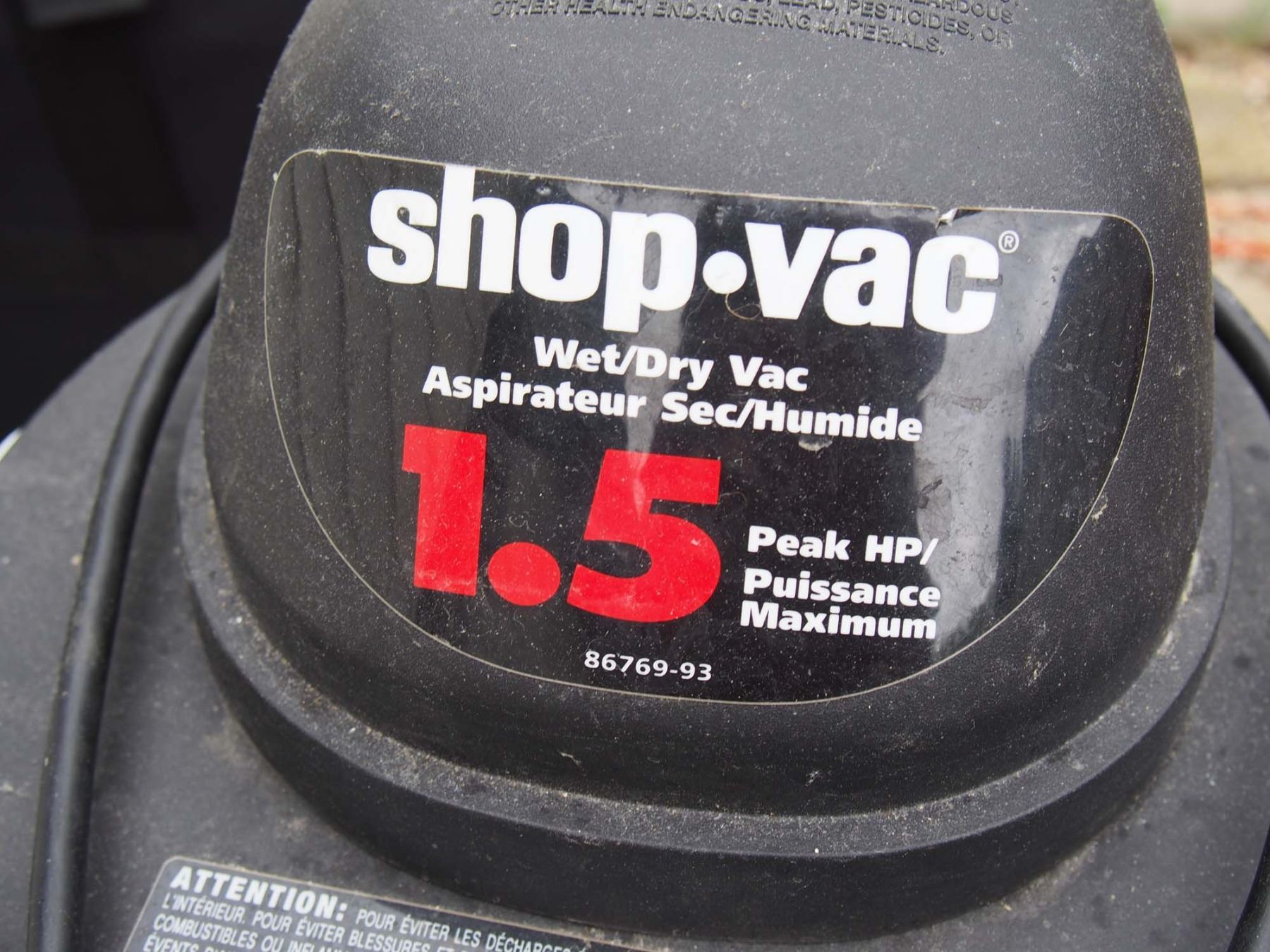Shopvac, 1.5HP, Working