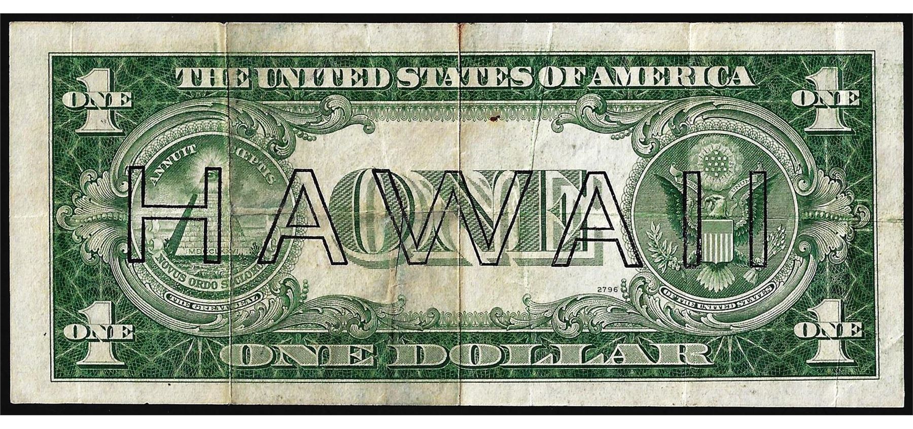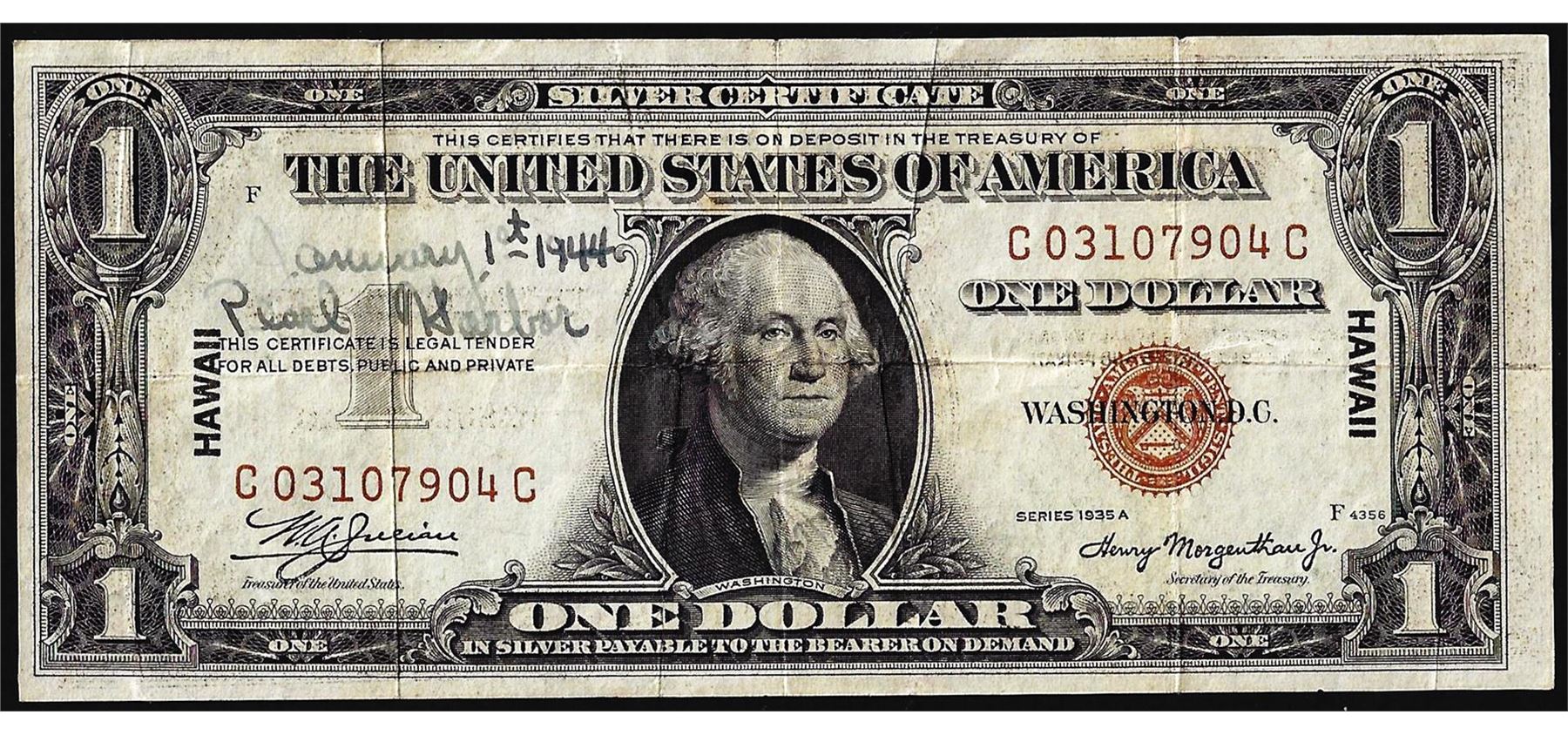 One Short Snorter 1935A $1 Hawaii WWII Emergency Issue Silver Certificate Note.