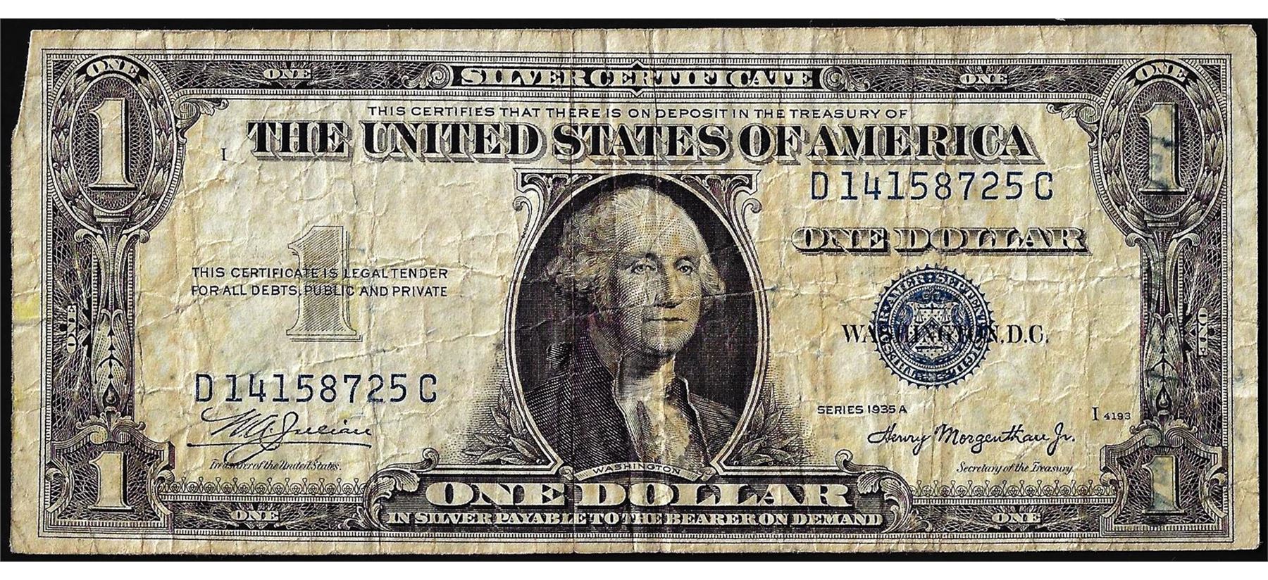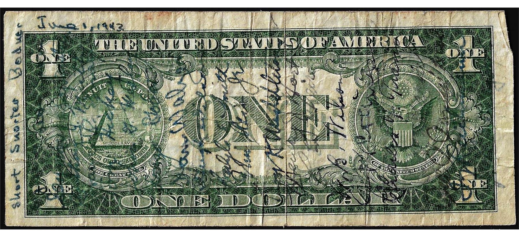 One Short Snorter Signed 1935A $1 WWII Silver Certificate Note.