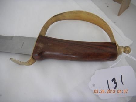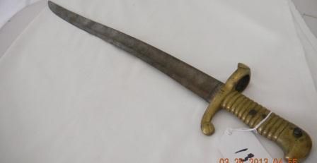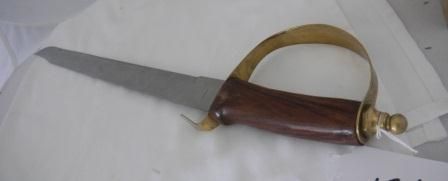 Short Sword Stainless Steel Blade, wood handle with Brass Knuckle Guard, from Pakistan, measuring 28 by 4 inches. Circa 1980 . Shipping $22.00