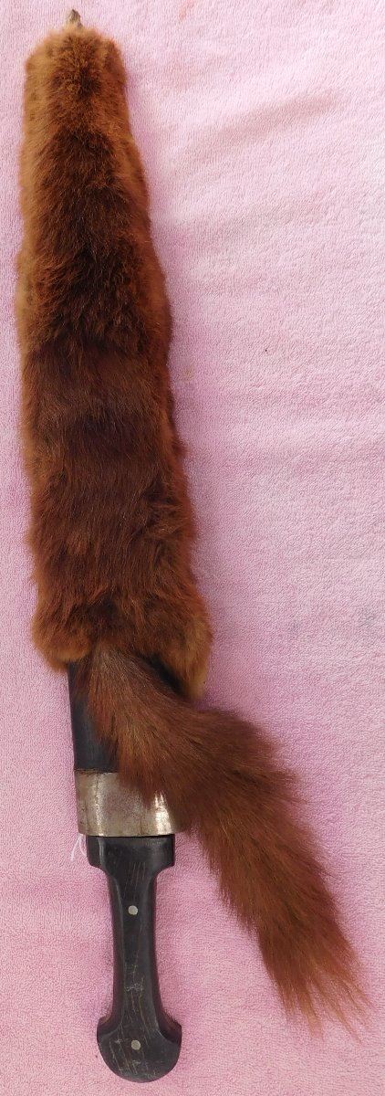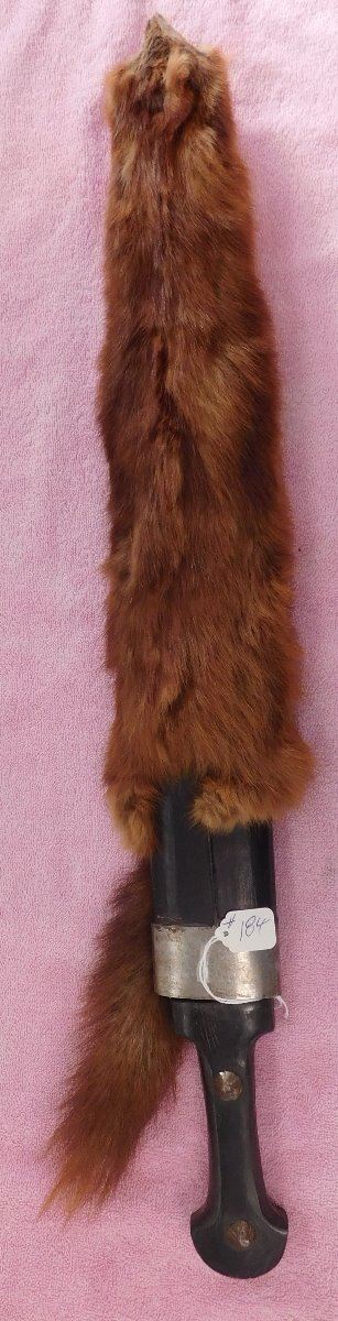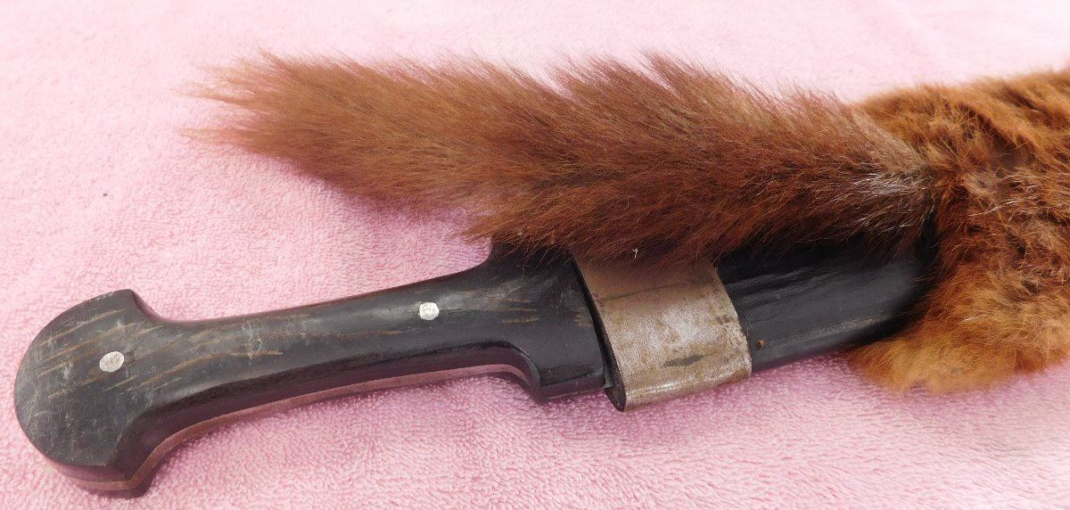 Short Sword, circa WWII. Made of steel, wood, horn and fur, the item measures 25.5" x 4" x 2". Khyber Pass, Afghanistan. Lethal weapon. Condition: Good, see images. Shipping: $30.00 due to length, w/insurance and signature.